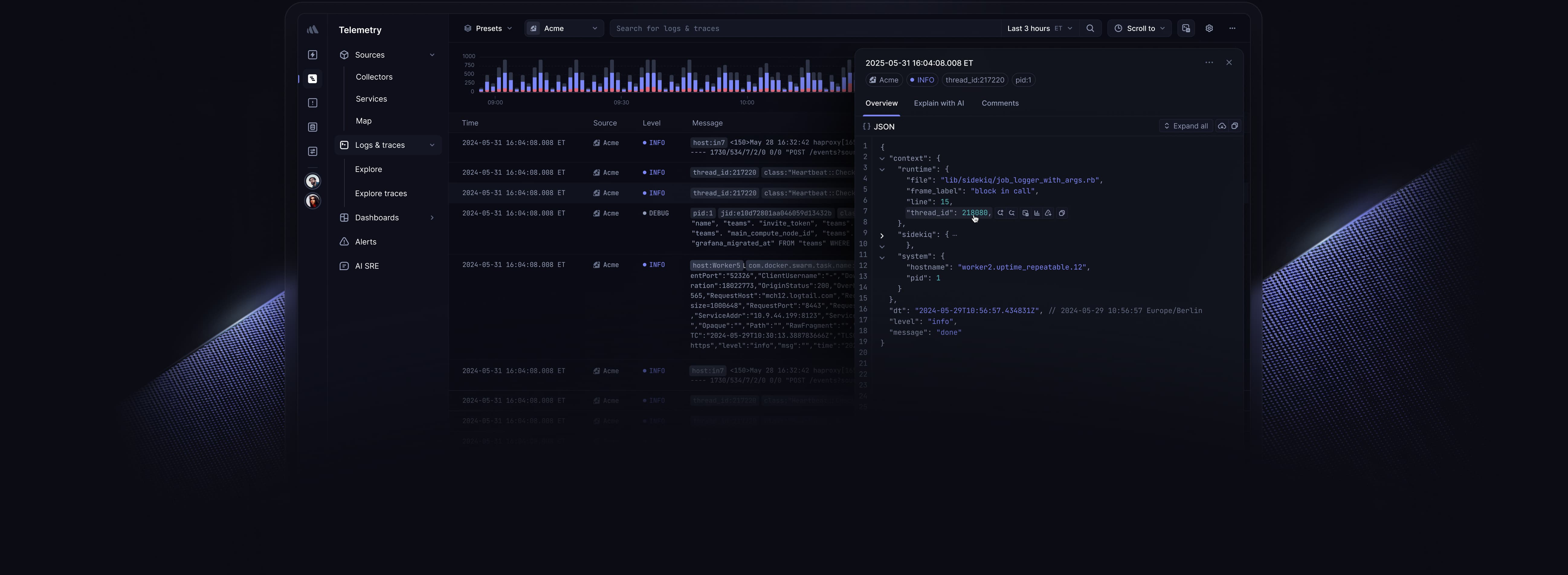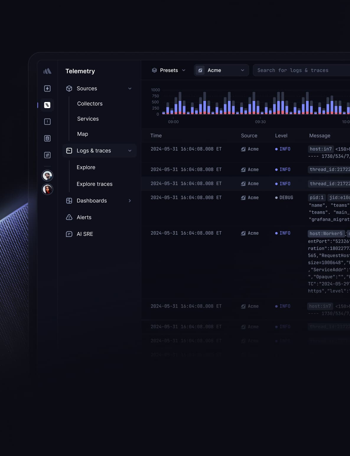 Collect logs across services with Vector, Syslog or OpenTelemetry with our reimagined log management.