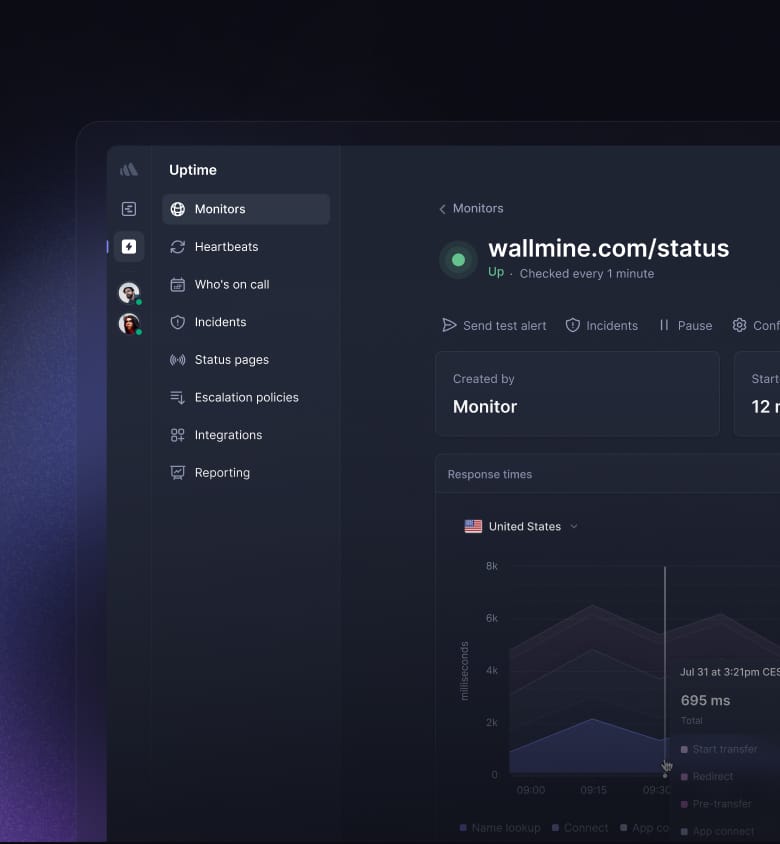 Monitor everything from SSL certificates to the sign-up flow and get alerted about critical issues.
